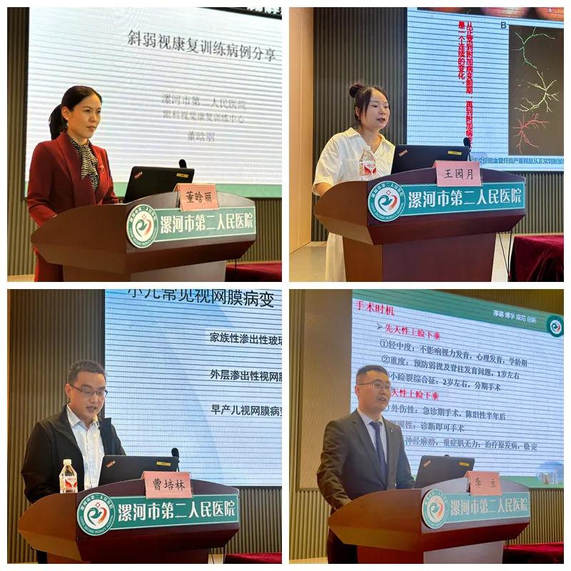 市二院董晗麗視覺(jué)視訓(xùn)師就《斜弱視康復(fù)訓(xùn)練病例分享》進(jìn)行了交流;市中心醫(yī)院王園月醫(yī)生對(duì)《早產(chǎn)兒視網(wǎng)膜病變的規(guī)范化診療及隨訪》進(jìn)行了解讀;市醫(yī)專(zhuān)二附醫(yī)院曹培林醫(yī)生分享了《小兒常見(jiàn)視網(wǎng)膜相關(guān)病變的診治經(jīng)驗(yàn)》;市二院眼科主任李立分享了《上瞼下垂的診斷及治療》。