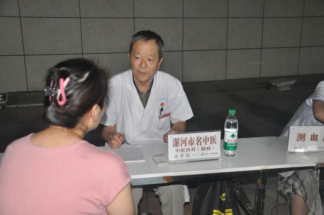 漯河市中醫(yī)院紀(jì)委書(shū)記劉家棟帶領(lǐng)漯河市名中醫(yī)申明軒、郭清華、宋莉娟及中醫(yī)內(nèi)科、針灸推拿、骨眼科、兒科等中醫(yī)專家走進(jìn)夜市,為群眾把脈問(wèn)診,耐心答疑,開(kāi)具健康處方并給予用藥指導(dǎo),進(jìn)行中醫(yī)藥養(yǎng)生知識(shí)普及。