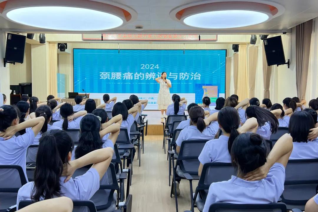培訓(xùn)現(xiàn)場,市中醫(yī)院宣講團成員康復(fù)科副主任盧鑫用通俗易懂的語言,通過PPT,圖文并茂、深入淺出地從頸椎病的類型、癥狀、中醫(yī)治療和預(yù)防等方面做了詳細(xì)的講解,讓大家了解在日常生活中如何預(yù)防頸椎病和需要注意的事項。同時囑咐大家在課間休息時一定要外出活動一下肢體。