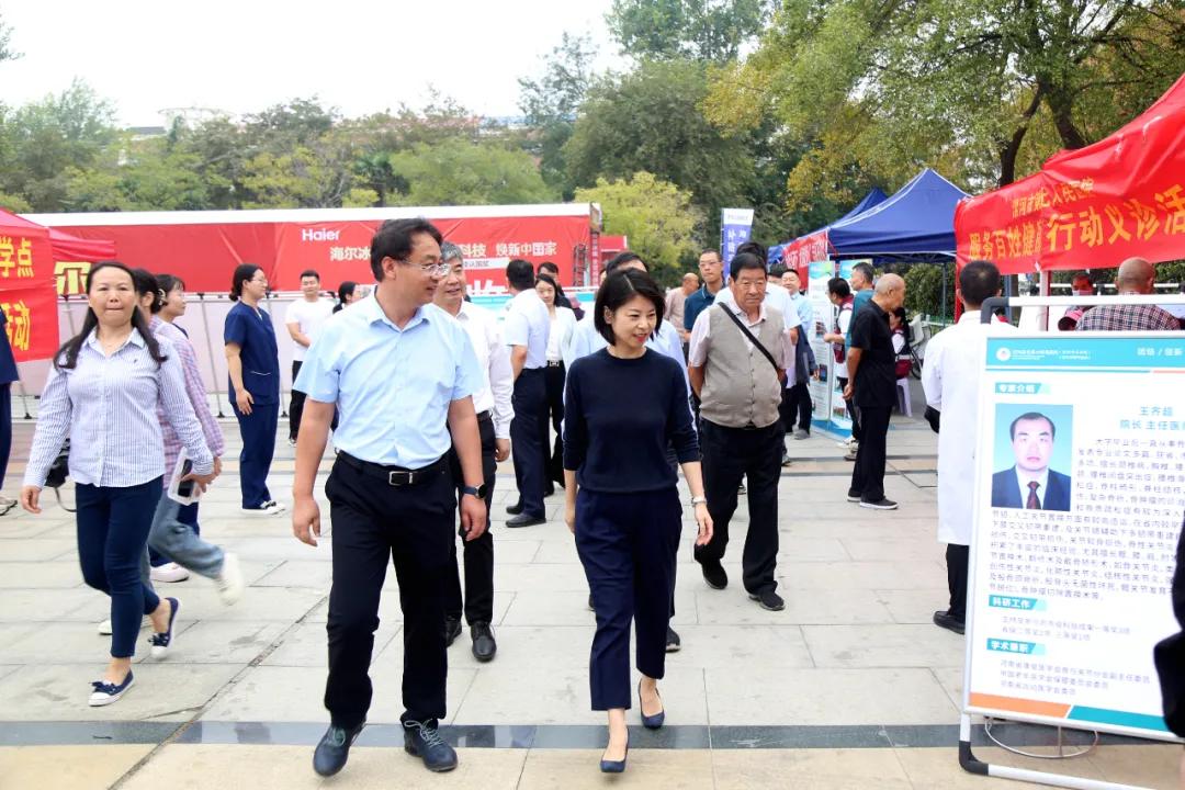 喜迎國慶,健康惠民。9月28日上午,在市衛(wèi)健委的統(tǒng)一組織下,漯河市骨科醫(yī)院(漯河醫(yī)專二附院、漯河市立醫(yī)院)黨委書記柴運洪、院長王齊超、副院長吳廣良帶領(lǐng)由骨科、內(nèi)科、外科、眼科、皮膚科、護(hù)理部、社工部共18位醫(yī)療專家組成的志愿者服務(wù)隊,在雙匯廣場開展了“服務(wù)百姓健康行動”集中大型義診活動。