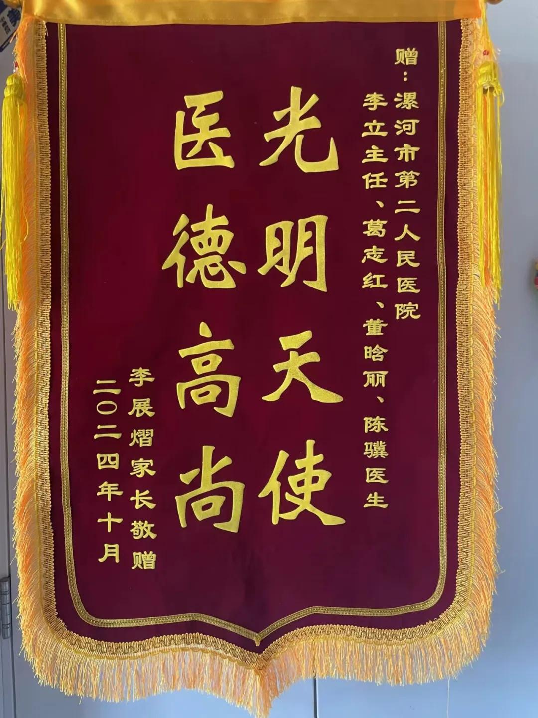 患兒的家長深感激動與欣慰,恰逢10月2日,也是患兒五周歲的生日,家長特意選擇這一具有紀念意義的日子,送來錦旗,以表達他們對眼科醫(yī)療團隊的深切感激之情。