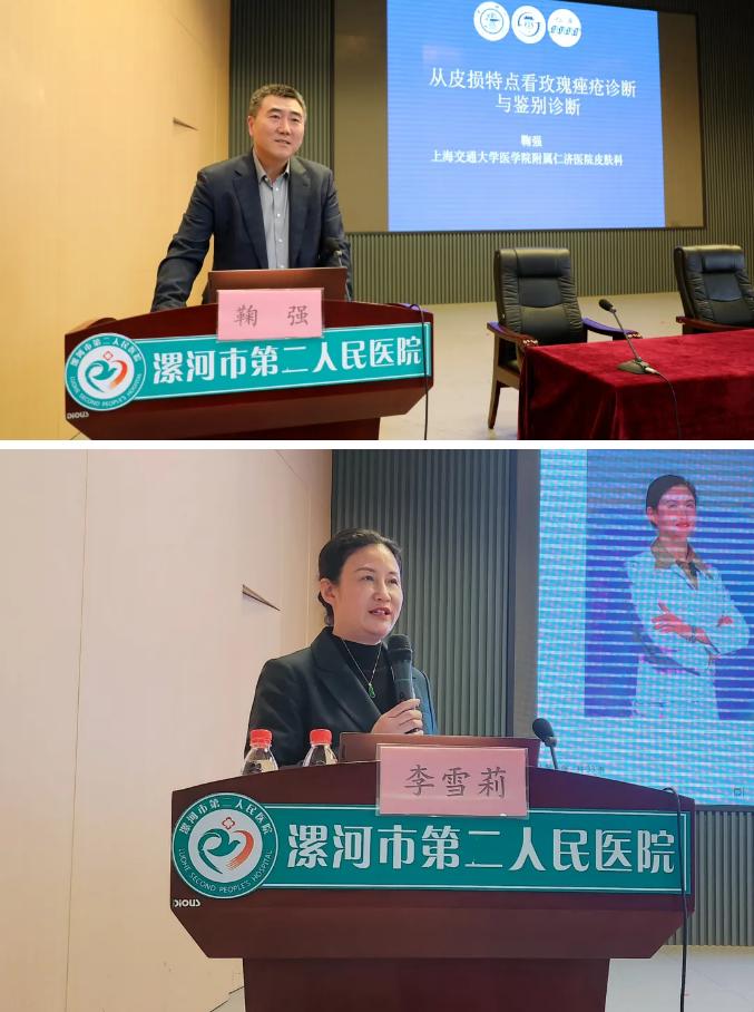會(huì)議特邀上海交通大學(xué)醫(yī)學(xué)院附屬仁濟(jì)醫(yī)院皮膚科主任鞠強(qiáng)教授、鄭州大學(xué)第一附屬醫(yī)院皮膚科主任尹光文教授、河南省人民醫(yī)院皮膚科主任李雪莉教授蒞臨授課。市二院黨委書(shū)記魏松、副院長(zhǎng)張曉東和全市及周邊相關(guān)專(zhuān)業(yè)醫(yī)務(wù)人員200余人參會(huì)。會(huì)議由副院長(zhǎng)張曉東主持。