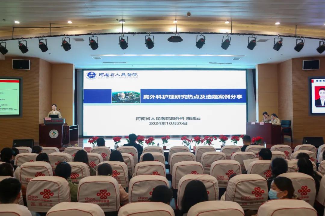 會議內容豐富多彩,涵蓋了胸外科護理的多個熱點話題和前沿技術。河南省人民醫(yī)院胸外科一病區(qū)護士長陳瑞云以其深厚的學術功底和豐富的實踐經(jīng)驗,為大家?guī)砹恕缎赝饪谱o理研究熱點分析及選題案例分享》。她通過生動的案例,深入剖析了當前胸外科護理領域的研究熱點,為參會者提供了寶貴的選題思路和研究方向。