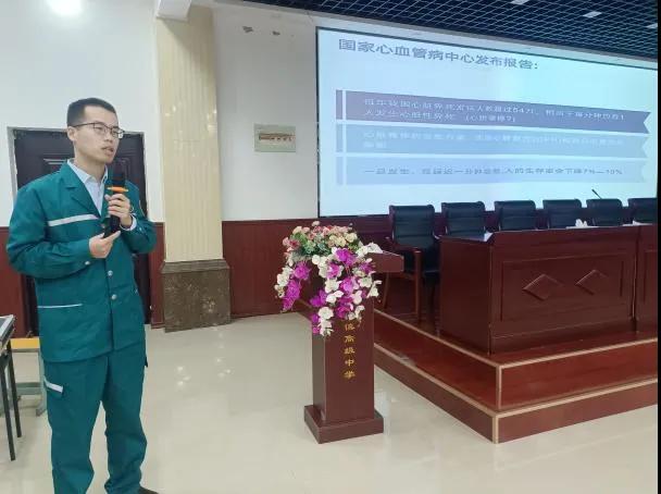 為增強(qiáng)居民健康保健知識及急救技能,提高胸痛患者區(qū)域協(xié)同救治能力,提升醫(yī)院胸痛中心建設(shè)內(nèi)涵,11月12日下午,我院社會工作部主任韓書環(huán)、心內(nèi)二病區(qū)副主任馬彥輝、急診重癥監(jiān)護(hù)病房主治醫(yī)師徐少奇應(yīng)邀到許慎高級中學(xué),對該校100余名教職工開展冠心病健康知識講座、心肺復(fù)蘇技能培訓(xùn)。