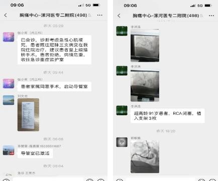 病區(qū)內(nèi),當(dāng)清晨的第一縷陽光穿透云層,心內(nèi)一科的醫(yī)護(hù)人員已是整裝待發(fā),準(zhǔn)備迎接新一天的挑戰(zhàn)。然而,這天的挑戰(zhàn)卻來得尤為“迅猛”。5時(shí)44分,醫(yī)院胸痛中心群內(nèi),張小莉醫(yī)生發(fā)送了“患者急性心肌梗死,家屬同意手術(shù),啟動(dòng)導(dǎo)管室”的訊息,陳建忠主任及介入團(tuán)隊(duì)便在介入手術(shù)室的緊密配合下,迅速開始了心肌梗死患者的救治之旅;15時(shí)38分,李洪浩醫(yī)生發(fā)送“患者急性心肌梗死,啟動(dòng)導(dǎo)管室”的訊息,16時(shí)50分,陳建忠主任再次啟動(dòng)了導(dǎo)管室......一天之內(nèi),心內(nèi)一科醫(yī)護(hù)團(tuán)隊(duì)連續(xù)搶救了8名心?;颊?!