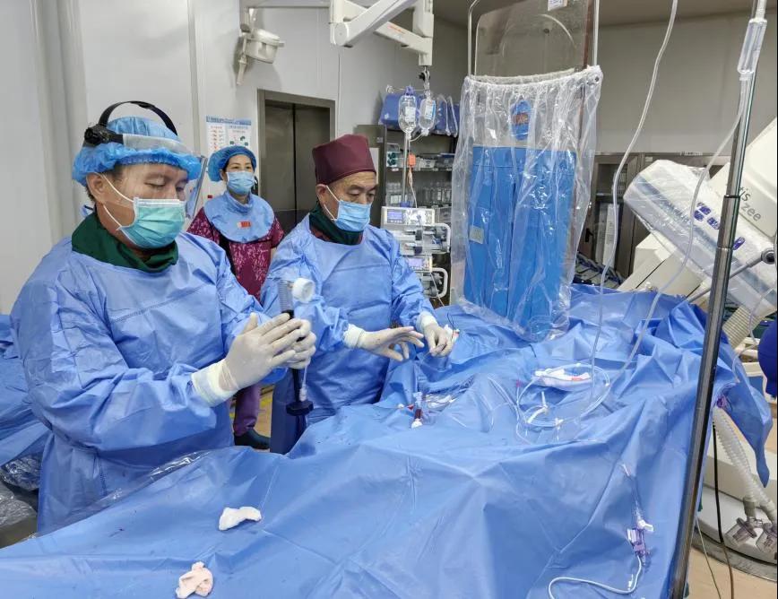 在這些患者中,一位正在消化內(nèi)科住院的超高齡老人格外引人關(guān)注。心電圖結(jié)合心肌酶結(jié)果顯示,該患者發(fā)生了急性非ST段抬高型心肌梗死,需要立即進(jìn)行介入手術(shù)治療?;颊咭咽?1歲高齡,這樣的年紀(jì)與身體狀況,發(fā)生心梗無疑是雪上加霜。由于老先生年齡過大,且伴有多種基礎(chǔ)疾病,手術(shù)的風(fēng)險(xiǎn)極高。盡管困難重重,但心內(nèi)一科和消化內(nèi)科的醫(yī)護(hù)人員并沒有退縮——他們迅速啟動(dòng)了胸痛綠色通道及危重患者搶救流程,科室聯(lián)手針對(duì)根據(jù)患者的身體狀況為其制定了個(gè)性化的介入手術(shù)治療方案。在手術(shù)過程中,陳建忠主任帶領(lǐng)宋松根副主任及團(tuán)隊(duì)?wèi){借著精湛的醫(yī)術(shù)和默契的配合,成功為患者實(shí)施了冠狀動(dòng)脈造影及支架植入術(shù),打通了他堵塞的血管,又一次為年邁的老人點(diǎn)燃了生的希望。