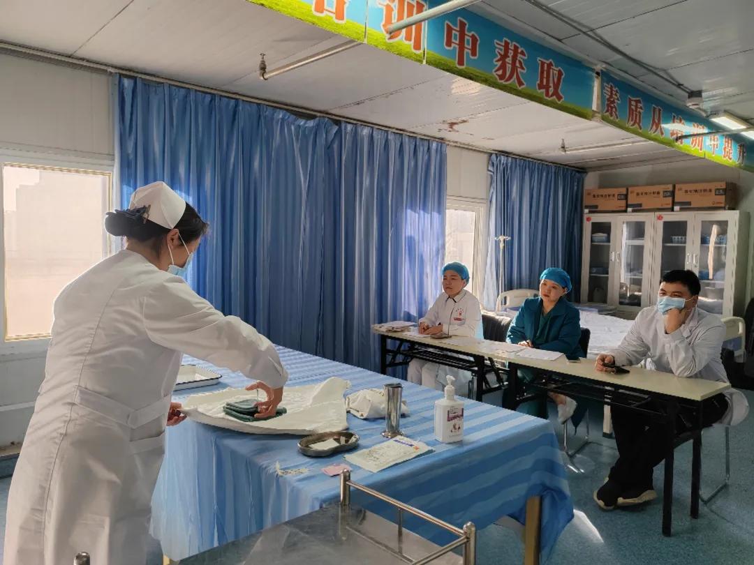 賽前,護理部精心策劃,設(shè)置理論考核和技能考核兩部分內(nèi)容,技能競賽項目有單人徒手心肺復(fù)蘇術(shù)和無菌技術(shù),采取集中培訓和線上學習相結(jié)合的形式。護生運用“護理助手”進行理論知識學習和觀看操作視頻,利用休息時間認真反復(fù)練習操作。