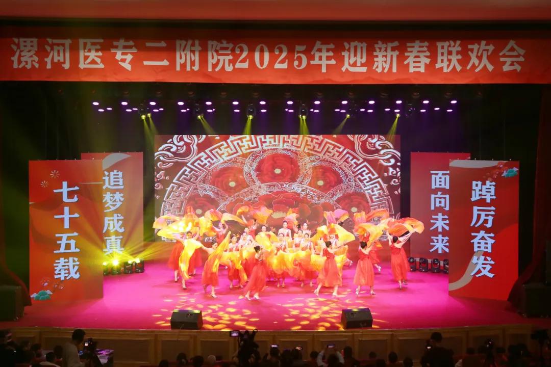 為慶祝漯河醫(yī)專二附院(漯河市骨科醫(yī)院、漯河市立醫(yī)院)建院七十五周年,1月21日,漯河醫(yī)專二附院2025年迎新春聯(lián)歡會(huì)在漯河市科教文化藝術(shù)中心大劇院隆重舉行。漯河醫(yī)學(xué)高等專科學(xué)校校長(zhǎng)張祎捷,市衛(wèi)生健康委副主任于宏,市醫(yī)保局副局長(zhǎng)于懷江,漯河醫(yī)專黨委副書記邊曉峰,市科協(xié)副主席臧明濤,市總工會(huì)四級(jí)調(diào)研員李敏,漯河醫(yī)專紀(jì)委書記王蕾,漯河醫(yī)專副校長(zhǎng)張福華、馬永超,漯河醫(yī)專二附院黨委書記柴運(yùn)洪,漯河醫(yī)專二附院院長(zhǎng)王齊超,漯河醫(yī)專黨辦主任楊曉宇,漯河醫(yī)專行政辦主任申耀強(qiáng),漯河醫(yī)專團(tuán)委書記周沛,市衛(wèi)健委醫(yī)政科科長(zhǎng)胡艷麗,市總工會(huì)文教衛(wèi)工會(huì)主任谷賀衛(wèi),郾城區(qū)龍塔街道辦事處主任李瑩,郾城區(qū)巴山路居委會(huì)書記王梅芝,郾城區(qū)伊坪小學(xué)校長(zhǎng)徐偉濤等出席。