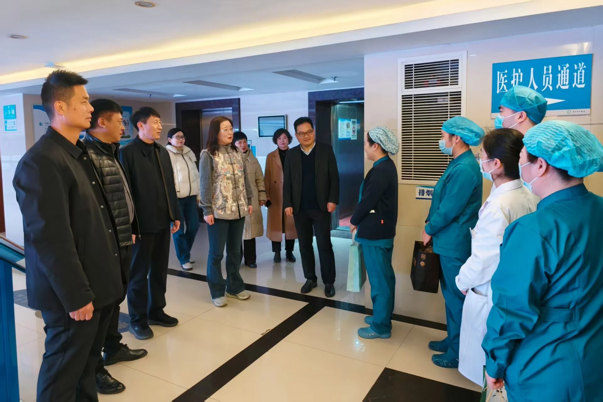 靈蛇獻瑞,歲啟新程。1月29日(大年初一)一大早,在濃濃的節(jié)日氛圍中,漯河市中醫(yī)院黨委書記、院長楊軼帶領院班子成員及相關科室負責人到臨床一線慰問春節(jié)堅守在崗的醫(yī)務人員,為他們送上牛奶、水果等慰問品,向他們致以新春的問候和美好的祝福。