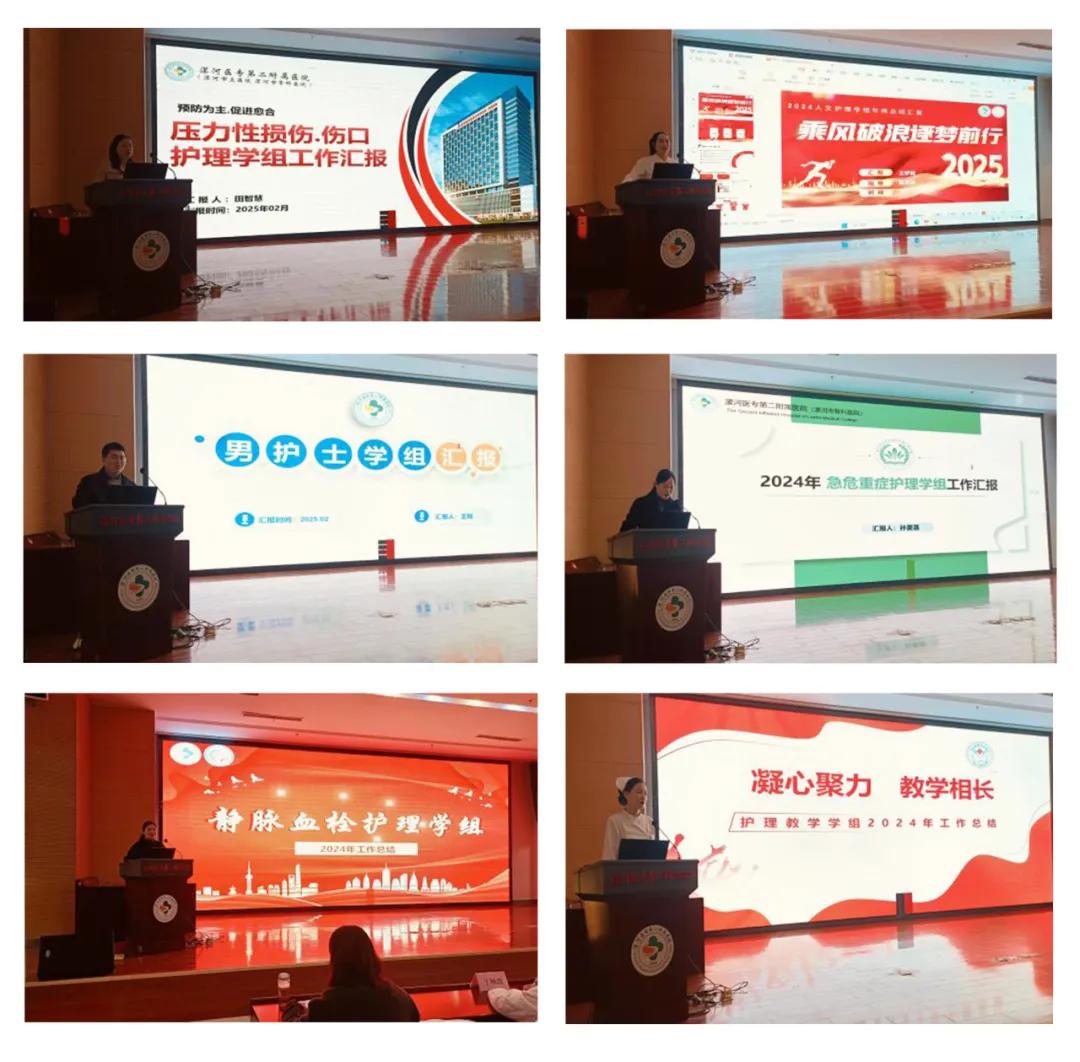 隨后,10個護(hù)理學(xué)組依次上臺進(jìn)行匯報。各學(xué)組代表圍繞2024年度工作目標(biāo)、取得成果、工作臺賬、存在問題以及2025年工作計劃等方面進(jìn)行了詳細(xì)闡述。在過去的一年中,各學(xué)組緊密圍繞醫(yī)院三甲創(chuàng)建工作,聚焦專科護(hù)理發(fā)展,積極開展了一系列卓有成效的工作。在匯報過程中,各學(xué)組也坦誠地指出了工作中存在的問題和挑戰(zhàn)。