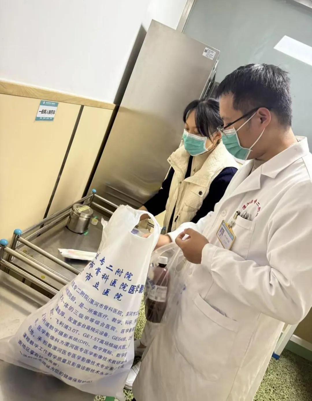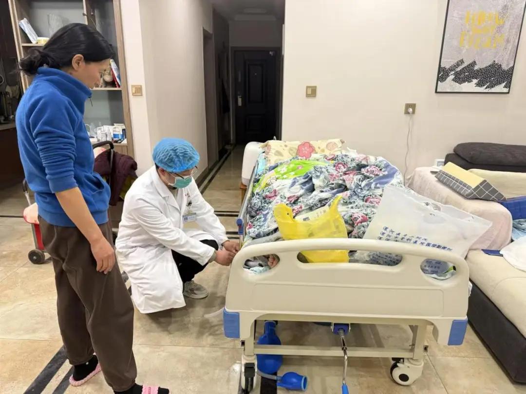 陳笑寒耐心地安撫家屬的情緒,同時迅速指導(dǎo)他們在豫健護(hù)理到家平臺上進(jìn)行下單。訂單一經(jīng)接收,在閆衛(wèi)甫主任的全力支持下,她與醫(yī)生劉明啟迅速響應(yīng),僅用數(shù)分鐘便仔細(xì)核對并打包了所有必需品。盡管一天的勞累尚未消散,他們還是不顧疲憊,迎著暮色急忙趕往患者家中。