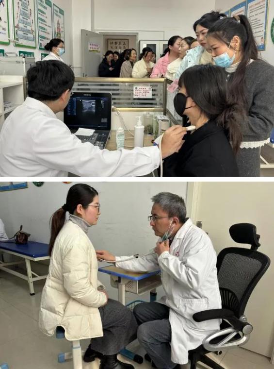 義診活動現(xiàn)場,醫(yī)療志愿者們?yōu)榕搪毠っ赓M提供血壓測量、甲狀腺彩超、體格檢查、用藥指導、健康咨詢、疾病診斷等服務,發(fā)放健康知識手冊。同時針對女教職工健康狀況和需求,提供個體化的健康建議和詳細的治療方案。此次共義診100余人,發(fā)放健康宣傳資料300 余份。