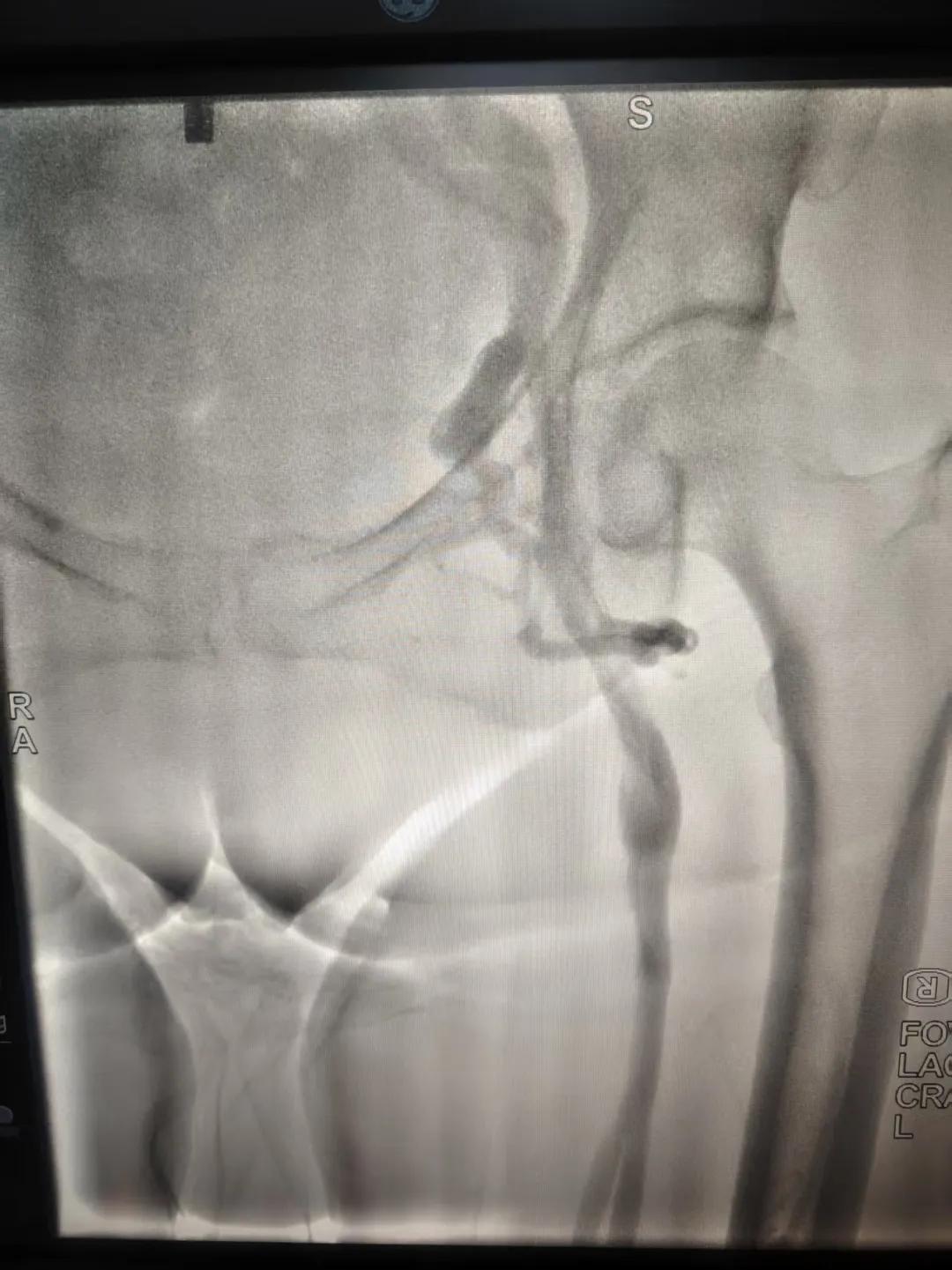 該患者,中年女性,左下肢反復(fù)腫脹、疼痛多年就醫(yī),未明病因。門(mén)診就診,經(jīng)血管外科副主任周創(chuàng)業(yè)評(píng)估病情后,為該患者門(mén)診行下肢靜脈造影,造影結(jié)果示:左髂靜脈周圍側(cè)枝形成,左髂靜脈壓迫綜合癥。明確診斷后將擇期介入手術(shù)治療。