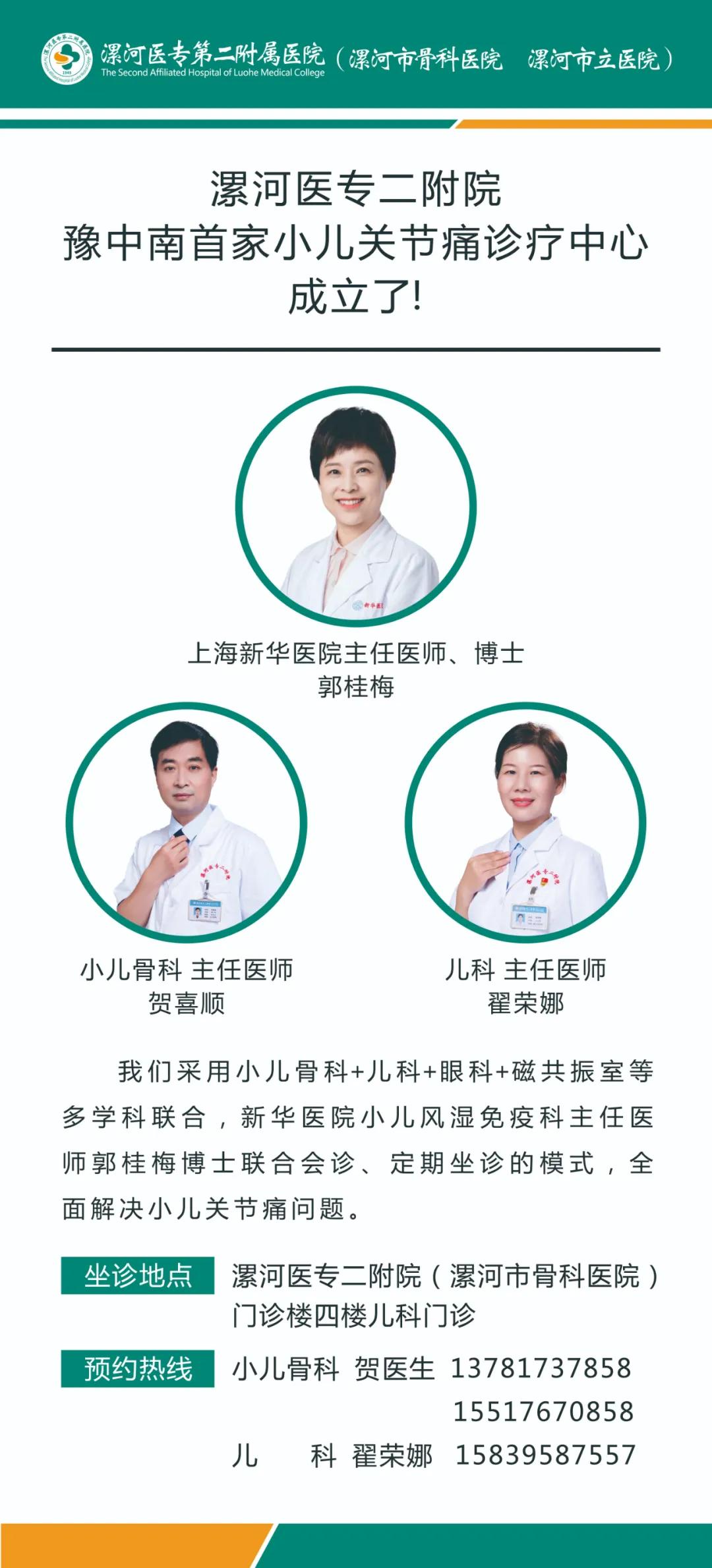 小兒關節(jié)痛診斷和治療的關鍵是通過專業(yè)診斷來區(qū)分不同的病因,為此,漯河醫(yī)專二附院(漯河市骨科醫(yī)院,漯河市立醫(yī)院)成立了豫中南地區(qū)首家“小兒關節(jié)痛多學科診療中心”!