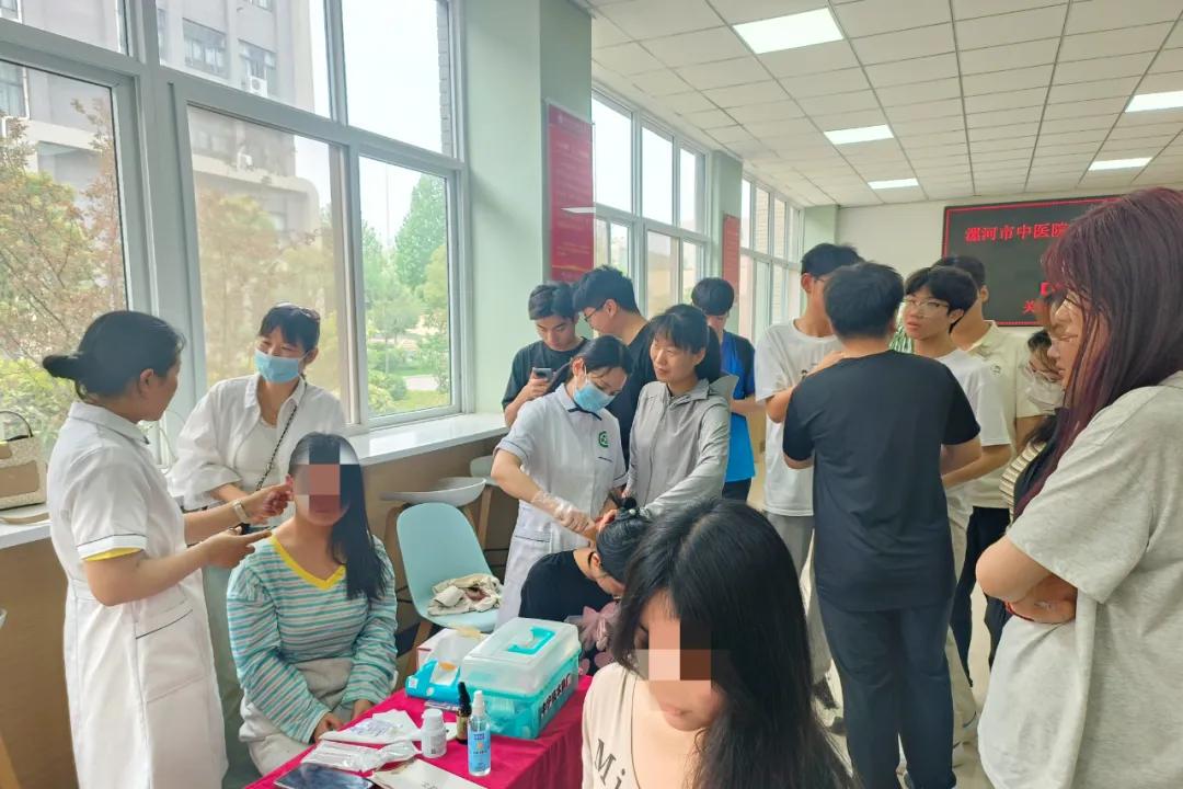 本次活動(dòng)精心組織了由頭痛失眠科、中醫(yī)內(nèi)科、針灸推拿科、皮膚科、疼痛科、外科、男性科等多學(xué)科專家組成的醫(yī)療團(tuán)隊(duì),為師生提供專業(yè)診療服務(wù)?;顒?dòng)當(dāng)天,漯河市中醫(yī)院門診部七大科室的專家們?cè)缭绲貋淼搅爽F(xiàn)場,準(zhǔn)備迎接前來咨詢的師生們?,F(xiàn)場人頭攢動(dòng),每個(gè)科室前都排起了長隊(duì)。專家們耐心細(xì)致地詢問病史、查體、開具處方,他們不僅現(xiàn)場解答了師生們的疑問,還傳授了一些中醫(yī)養(yǎng)生和保健的知識(shí)。現(xiàn)場特別設(shè)置了中醫(yī)特色治療體驗(yàn)區(qū)和中醫(yī)藥衍生產(chǎn)品展示區(qū),通過推拿、針灸等傳統(tǒng)療法體驗(yàn)讓師生們親身體驗(yàn)中醫(yī)拔罐、刮痧、艾灸等特色療法,活動(dòng)過程中還穿插健康知識(shí)宣講,發(fā)放了健康知識(shí)宣傳頁,向師生們普及了常見病、多發(fā)病的預(yù)防、健康養(yǎng)生知識(shí)。