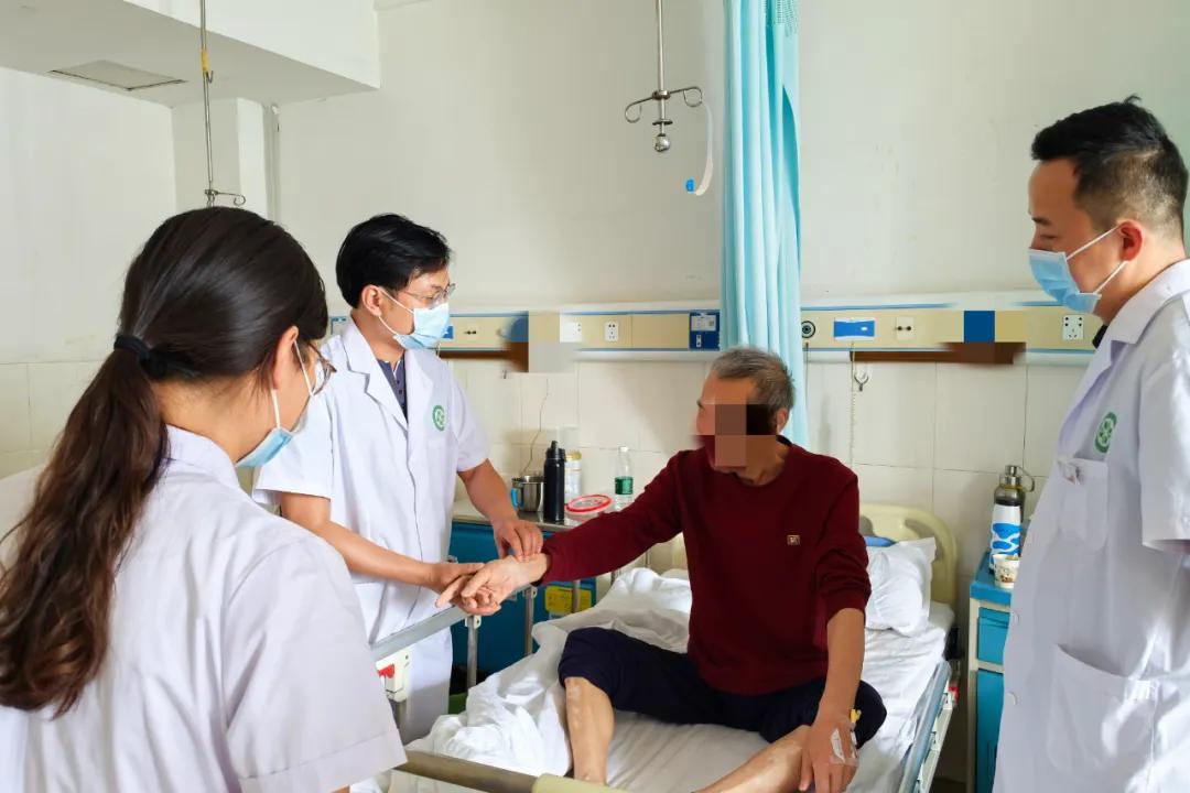 首先,李華華教授認(rèn)真聽取主管醫(yī)師針對疑難病例的病歷匯報,查閱患者檢查資料,結(jié)合其臨床經(jīng)驗(yàn),就治療中出現(xiàn)的疑難點(diǎn)提出下一步合理化診療建議。隨后他來到病房,系統(tǒng)詢問患者此階段的身體狀況、體力及飲食情況,結(jié)合既往治療經(jīng)過,中醫(yī)四診合參,及時調(diào)整中西醫(yī)治療方案,為患者后續(xù)康復(fù)奠定基礎(chǔ)。