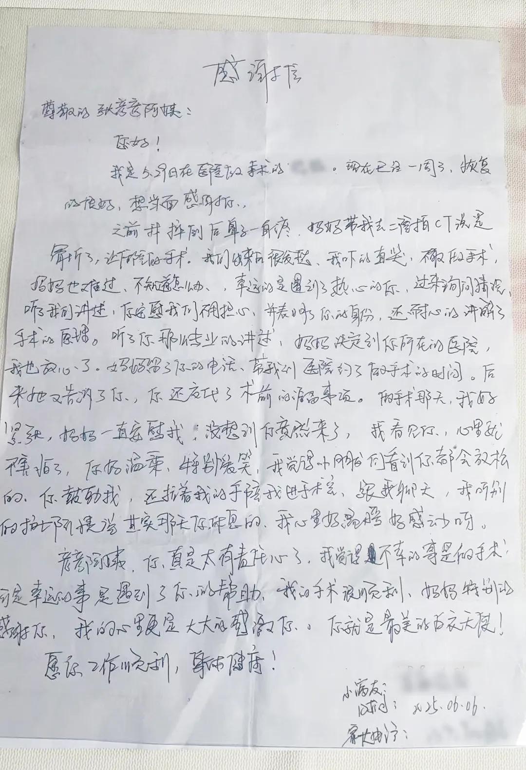 看似一個很平常的舉動,當孩子媽媽告知孩子以后,小朋友在心底種下了感恩的種子,出院以后專程來醫(yī)院送來了這封感謝信......
