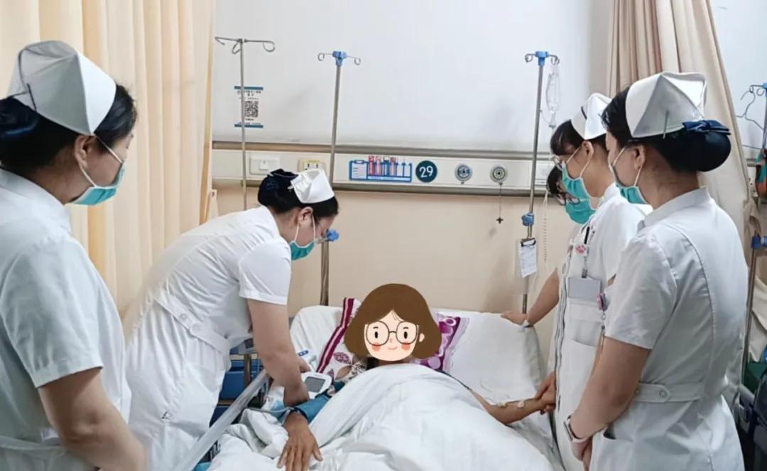 術(shù)后,患者身上留置了術(shù)區(qū)引流管、深靜脈導(dǎo)管、胃管、導(dǎo)尿管等多根管路,加上智力低下無法理解、術(shù)后疼痛等拔管風(fēng)險(xiǎn)極高。護(hù)士長陳笑寒帶領(lǐng)護(hù)理團(tuán)隊(duì)立即組織疑難病例討論,制定出個(gè)性化、??苹淖o(hù)理方案,如管道的妥善固定,定時(shí)翻身、拍背,加強(qiáng)巡視等,在康復(fù)初期,責(zé)任護(hù)士始終陪伴她左右,在做好管道護(hù)理的同時(shí),還結(jié)合病情循序漸進(jìn)的引導(dǎo)她下床活動(dòng);患者術(shù)后常常突然哭泣、抗拒治療,面對患者術(shù)后的情緒激動(dòng),護(hù)理團(tuán)隊(duì)立即剖析原因,及時(shí)緩解術(shù)后引起的疼痛,并化身"臨時(shí)家人",握著她的手輕聲安撫,用耐心和溫柔逐漸撫平她的焦慮。