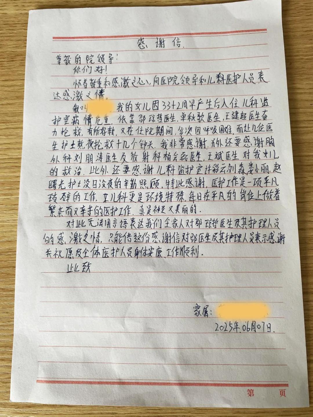 為表達對醫(yī)護人員的感激之情,孩子父母專門將一封感謝信送到醫(yī)院,稱贊醫(yī)務(wù)人員“真是神圣又美麗” !