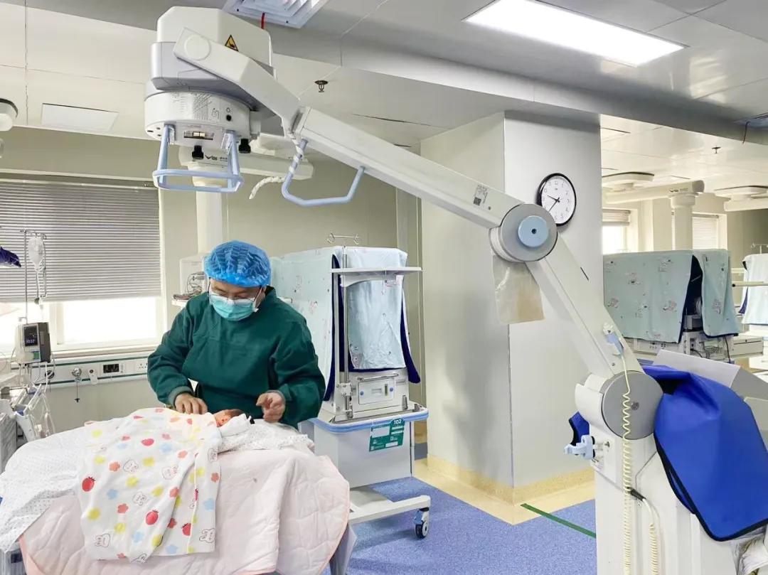 由于該新生兒早產(chǎn)近兩月(僅33周),體重不到4斤,出生后出現(xiàn)呻吟呼吸、吐沫,兒科診斷為 “肺發(fā)育不成熟”(NRDS),并給予無創(chuàng)呼吸機輔助通氣。然而,30分鐘后患兒突然出現(xiàn)面色發(fā)紫、呼吸困難、血氧驟降,考慮可能發(fā)生氣胸,新生兒團隊緊急電話聯(lián)系放射科。