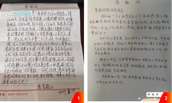 另一封感謝信來自因腰疼住院的患者,信中感謝了護士長田智慧和護士曹玲。治療期間,兩位護理人員將專業(yè)、細致的服務貫穿始終。從日??祻妥o理操作到患者心理疏導,她們始終保持高度的責任心,耐心解答疑問、貼心安撫情緒,用暖心服務助力患者身心康復,贏得患者由衷的信賴與感激。