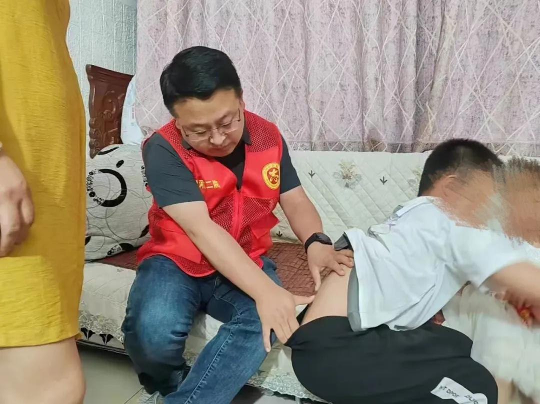 近日,市二院放療科團隊再次來到小匯攏家中回訪。醫(yī)務人員仔細檢查了他的身體恢復情況,并叮囑日常注意事項??粗⒆踊畋膩y跳的樣子,誰也想不到,這個陽光少年曾因腫瘤壓迫脊髓而瀕臨絕境。
