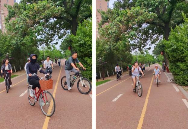 本次活動以“喜迎七一”為主題,將愛黨愛國教育、團(tuán)隊建設(shè)與健康運動有機(jī)結(jié)合。青年朋友們精神飽滿地踏上單車,沿著精心規(guī)劃的騎行路線出發(fā)。騎行隊伍宛如一條流動的青春彩帶,穿梭于沙澧河畔的綠樹碧水之間。大家一路歡聲笑語,洋溢著青春的活力與朝氣,以實際行動踐行低碳環(huán)保理念,成為景區(qū)一道亮麗的風(fēng)景線。