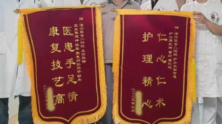 出院之際,患者特意送來兩面錦旗:一面寫給護(hù)理團(tuán)隊(duì),致謝“仁心仁術(shù),護(hù)理精心”;一面獻(xiàn)給醫(yī)生與治療師,感恩“醫(yī)患手足情,康復(fù)技藝高” 。這一面面的錦旗,是認(rèn)可,更是康復(fù)醫(yī)學(xué)科“以患者為中心”的生動寫照。