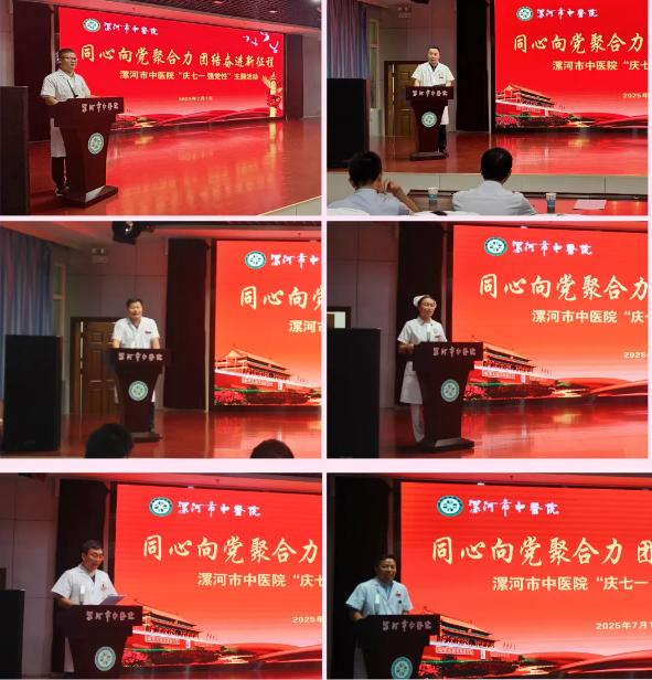 為慶祝中國共產(chǎn)黨成立104周年,傳承紅色基因,凝聚奮進(jìn)力量,7月1日下午,漯河市中醫(yī)院在四樓大會(huì)議室開展同心向黨聚合力 團(tuán)結(jié)奮進(jìn)新征程“慶七一 強(qiáng)黨性”主題活動(dòng)。醫(yī)院黨委班子、各黨支部書記、委員、入黨積極分子、發(fā)展對象、預(yù)備黨員以及優(yōu)秀黨員代表等齊聚一堂,“醫(yī)”聲頌黨、以“聲”傳情,共赴一場紅色精神的傳承之約,為黨的生日送上深情祝福。