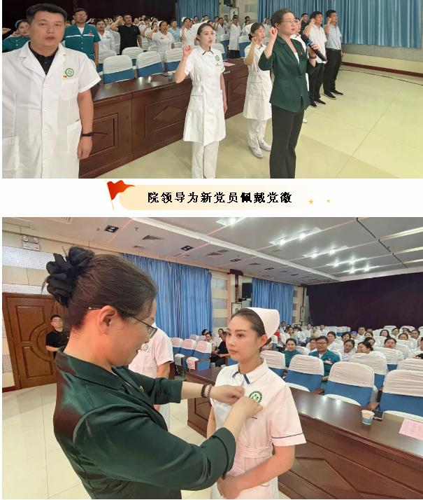院領(lǐng)導(dǎo)為新黨員佩戴黨徽