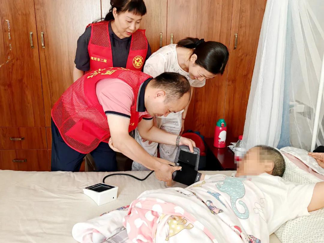 許阿姨患有心臟病、高血壓及腰椎疾病多年,天氣炎熱她的血壓一直不穩(wěn)定,家屬通過微信群向科室副主任楊光咨詢。7月16日,楊光在了解此情況后,與李慧新主任商量,決定帶醫(yī)療團(tuán)隊一起前往許阿姨家中,為她進(jìn)行血壓測量、心臟聽診等檢查,對其日常生活中的注意事項進(jìn)行了詳細(xì)的指導(dǎo)。同時,還對許阿姨的用藥方案和康復(fù)計劃進(jìn)行了相應(yīng)的調(diào)整。