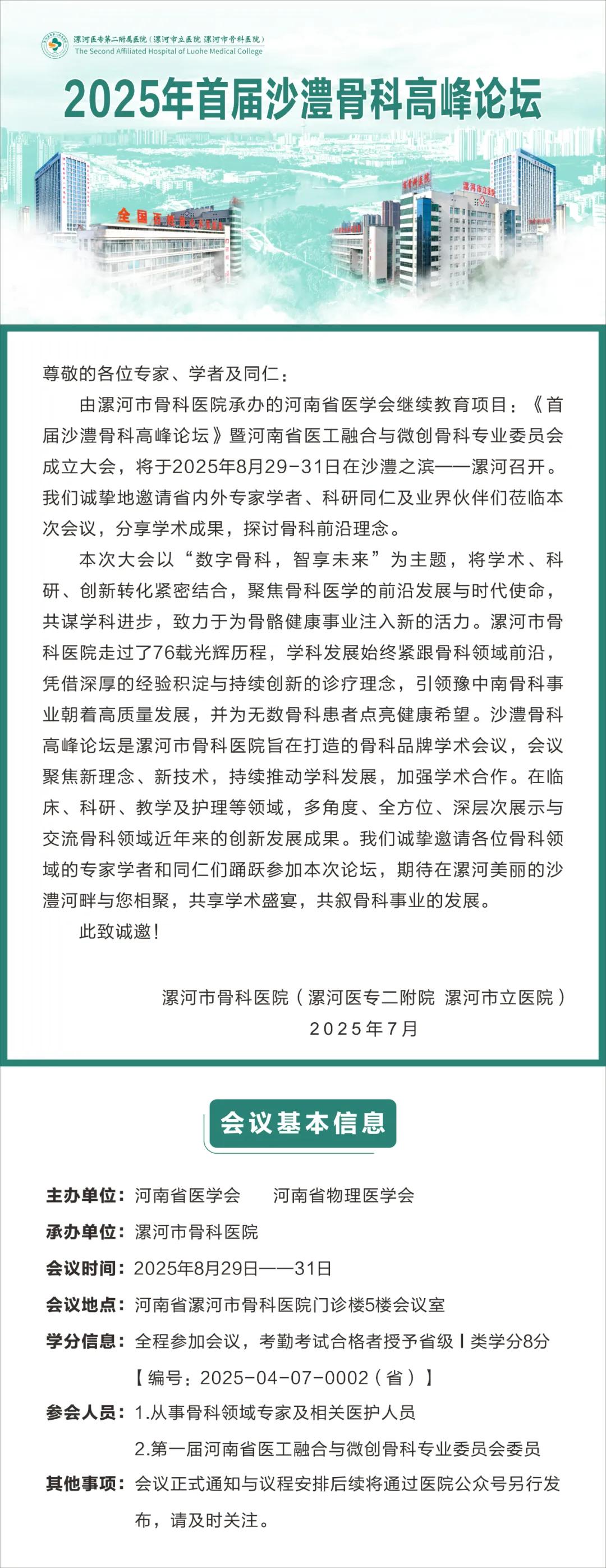 會(huì)議預(yù)告 | 2025年首屆沙澧骨科高峰論壇召開在即