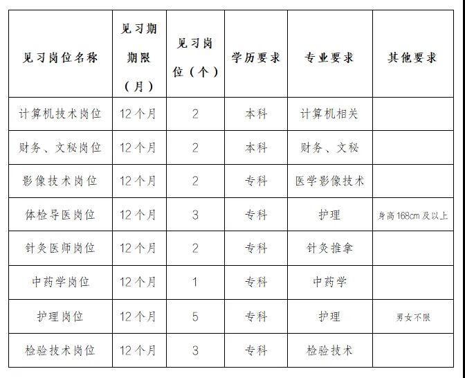 根據(jù)《河南省就業(yè)見習(xí)管理暫行辦法》及相關(guān)文件精神,結(jié)合漯河市中醫(yī)院實(shí)際需求,招收見習(xí)人員若干。現(xiàn)將有關(guān)事宜公告如下: