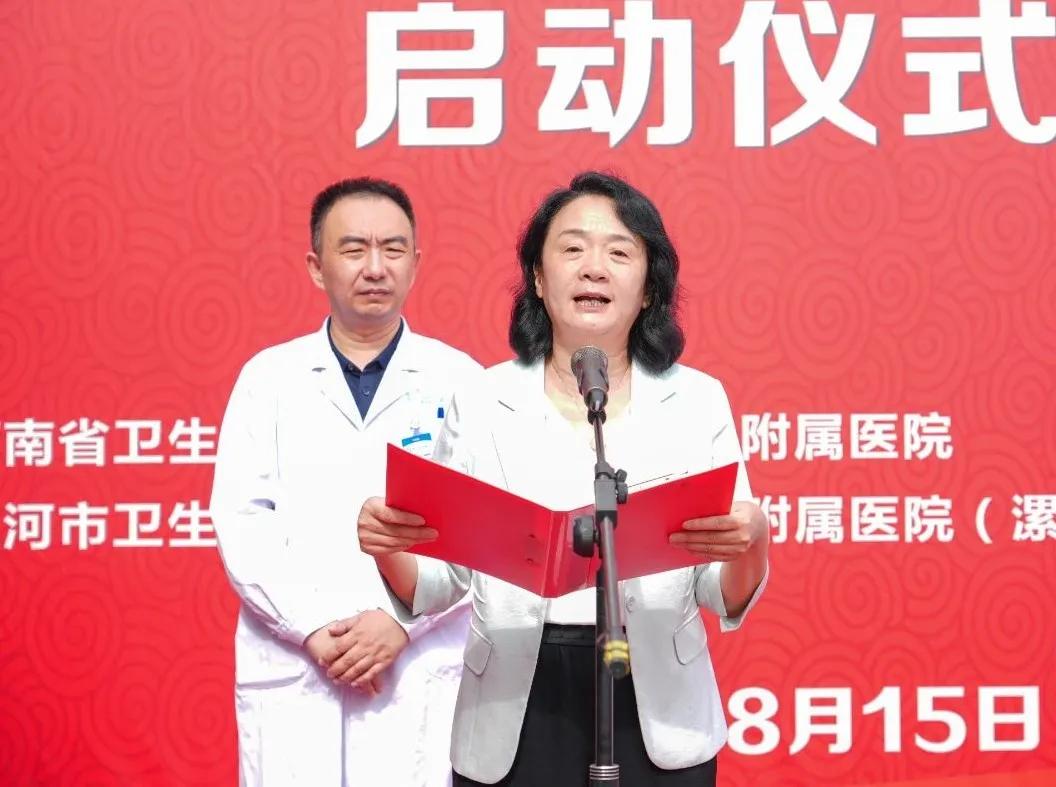 市衛(wèi)健委副主任于宏在致辭中指出,中國(guó)流動(dòng)眼科手術(shù)車“復(fù)明16號(hào)”正式進(jìn)駐漯河市,不僅是落實(shí)國(guó)家醫(yī)改政策的關(guān)鍵舉措,更是推動(dòng)優(yōu)質(zhì)醫(yī)療資源下沉的生動(dòng)實(shí)踐。為漯河市廣大群眾帶來(lái)福祉,讓群眾在家門(mén)口能得到省級(jí)專家的咨詢及診療服務(wù),為身患眼疾的患者帶來(lái)光明,對(duì)提升漯河市整體醫(yī)療衛(wèi)生水平也具有重要意義。這次聯(lián)盟活動(dòng)是漯河醫(yī)專二附院提升醫(yī)療技術(shù)能力的大好機(jī)會(huì),希望漯河醫(yī)專二附院珍惜合作機(jī)會(huì),與鄭大一附院緊密協(xié)作,切實(shí)將醫(yī)療惠民政策落到實(shí)處,為群眾帶來(lái)實(shí)實(shí)在在的健康福利。相信此次聯(lián)盟活動(dòng)的開(kāi)展,對(duì)漯河市眼病救治能力的提升將起到很大的促進(jìn)作用,也將為漯河市及周邊地區(qū)的眼病患者搭建更暢通的光明之路。