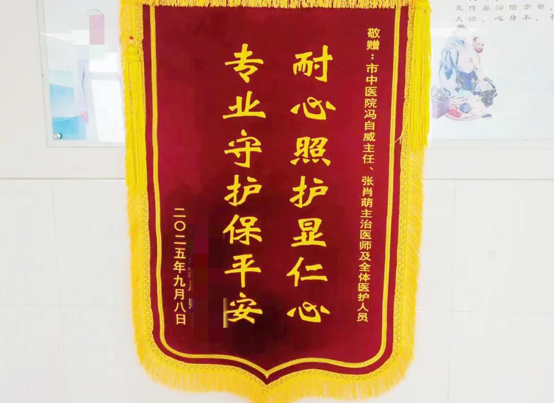 一面錦旗,是一份沉甸甸的信任;兩面錦旗,是雙倍真摯的深情。這份來(lái)自同一個(gè)家庭的共同認(rèn)可,給予了我們莫大的鼓舞和動(dòng)力。未來(lái),漯河市中醫(yī)院將繼續(xù)以患者為中心,提升醫(yī)療與服務(wù)水平,為更多患者的健康保駕護(hù)航。(婦產(chǎn)科 兒 科)