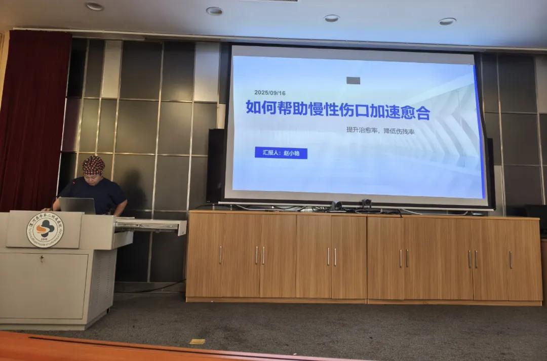 隨后,壓力性損傷/傷口護(hù)理學(xué)組學(xué)術(shù)調(diào)研組長趙小艷老師圍繞《如何幫助慢性傷口加速愈合》展開授課。她深入探討慢性傷口愈合延遲的常見誘因,如局部血運(yùn)、感染、營養(yǎng)不良等,進(jìn)而系統(tǒng)闡述了個(gè)性化護(hù)理方案制定、傷口清創(chuàng)技巧、感染防控要點(diǎn),以及通過優(yōu)化局部環(huán)境、結(jié)合物理治療等促進(jìn)愈合的實(shí)用手段。豐富的內(nèi)容和實(shí)用的方法,為護(hù)理人員應(yīng)對(duì)慢性傷口難題提供了清晰思路與有效策略。