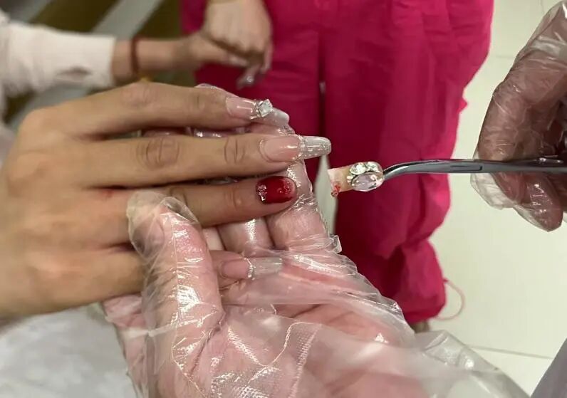 市二院顯微外科、燒傷整形科主任沈衛(wèi)軍介紹:“近兩周以來,科室已接診5例因美甲導致甲床分離、感染等問題的患者。”沈主任分析,多數患者因長期美甲致使指甲變薄、質地變脆,而過長或粘貼延長甲更如同加長了“杠桿”,即便輕微外力也可能導致甲板整體剝脫。此外,也有部分患者是在美甲過程中,由于操作不正當,或者消毒不徹底,引發(fā)指甲感染、化膿甚至發(fā)出異味等并發(fā)癥。