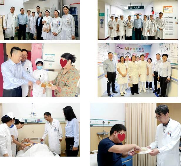 所到之處,暖意濃濃。每到一處,院領導都與大家親切交談,將承載著關心和祝福的慰問品送到大家手中,詳細詢問假期排班情況、保障措施落實情況,對大家堅守崗位、無私奉獻的精神給予高度贊揚,對職工家屬們的理解和支持表示感謝。同時,叮囑大家在全力保障醫(yī)療工作的同時,要注意休息。在病房里,院領導將精心準備的月餅送到住院患者及家屬手中,詳細詢問他們的恢復情況,并為他們送上節(jié)日的祝福。