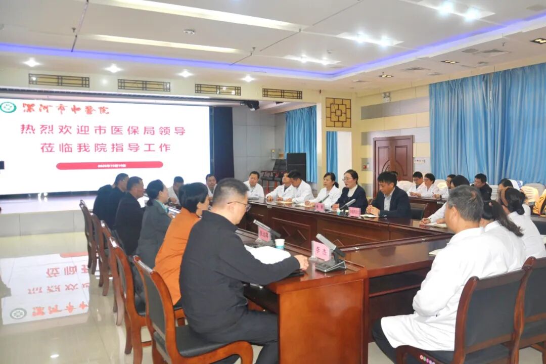 10月10日下午,漯河市醫(yī)保局黨委書記李志輝、副局長肖應(yīng)力等一行六人蒞臨漯河市中醫(yī)院開展醫(yī)保座談會。市中醫(yī)院黨委書記、院長楊軼,副院長閆丙川,醫(yī)保辦、醫(yī)務(wù)科、護理部、藥劑科、信息科負責(zé)人及各臨床科室主任參加會議。