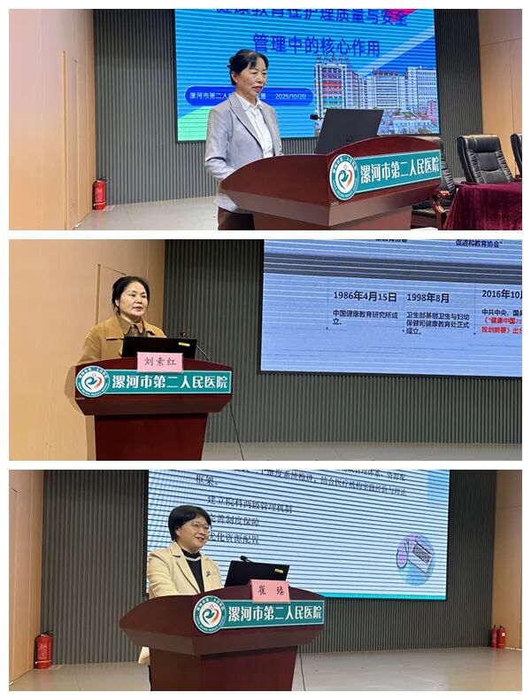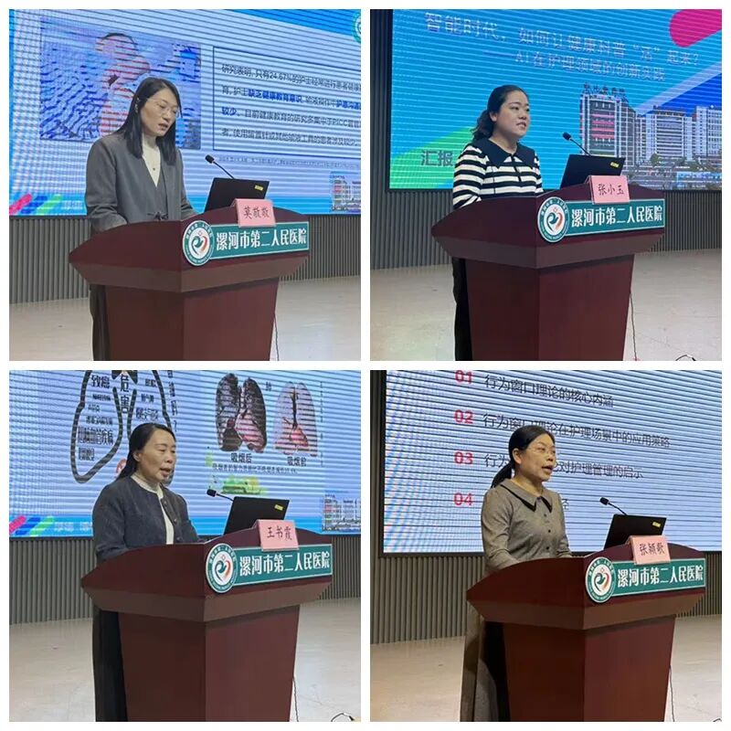 在學(xué)術(shù)交流環(huán)節(jié),多位護(hù)理專(zhuān)家圍繞健康教育的新理念、新方法與新技術(shù)展開(kāi)深入探討。市二院護(hù)理部主任高凱霞分享了《健康教育在護(hù)理質(zhì)量與安全管理中的核心作用》;市中心醫(yī)院護(hù)理部副主任劉素紅講解了《基于賦能理論構(gòu)建三級(jí)醫(yī)院健康教育護(hù)士健康素養(yǎng)提升路徑》;市六院護(hù)理部副主任崔臻以《賦能·融合——構(gòu)建新時(shí)代醫(yī)院護(hù)理健康教育體系的實(shí)踐與思考》為題進(jìn)行交流;臨潁縣人民醫(yī)院護(hù)理部副主任張潁歌介紹了《基于行為窗口理論的護(hù)士高效能溝通技巧》;市二院普外科護(hù)士長(zhǎng)王書(shū)霞圍繞《腫瘤患者營(yíng)養(yǎng)與身心健康:吃出健康,動(dòng)出活力》展開(kāi)講解;麻醉手術(shù)部副護(hù)士長(zhǎng)莫敬敬探討了《基于指南的靜脈治療健康教育及溝通模式》;小兒外科骨干護(hù)士張小玉則就《智能時(shí)代,如何讓健康科普“活”起來(lái)?——AI在護(hù)理領(lǐng)域的創(chuàng)新實(shí)踐》進(jìn)行分享。專(zhuān)家們結(jié)合臨床實(shí)例,展示了健康教育的最新成果與實(shí)踐經(jīng)驗(yàn),內(nèi)容充實(shí),視角多元,為參會(huì)者帶來(lái)深刻啟發(fā)。