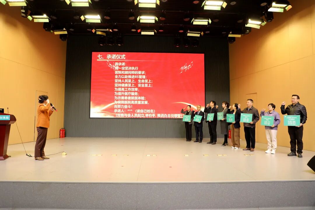 在隨后進行的承諾儀式環(huán)節(jié),護理部主任高凱霞帶領全體與會人員莊嚴宣誓。鏗鏘有力的誓言,傳遞出全院職工全力以赴推進8S管理、提升醫(yī)療品質的堅定決心。