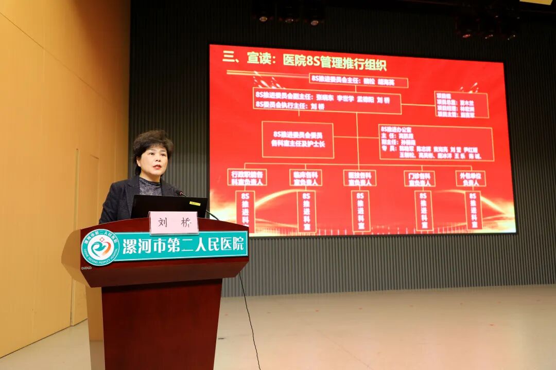 黨委副書記、院長胡海英宣布漯河市第二人民醫(yī)院8S精益管理項目正式啟動,標志著醫(yī)院在精益管理升級之路上邁出關鍵一步,全場響起熱烈掌聲。