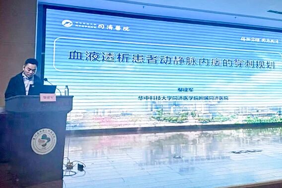會議特邀湖北省護理學(xué)會血液凈化護理專業(yè)委員會主任委員,華中科技大學(xué)同濟醫(yī)院血液凈化室護士長鄢建軍圍繞《血液透析患者動靜脈內(nèi)瘺的穿刺規(guī)劃》,系統(tǒng)闡述了如何從血管評估、穿刺點選擇、到長期穿刺方案的制定,通過科學(xué)的規(guī)劃最大限度地保護血管,為延長患者“生命線”的壽命奠定了堅實基礎(chǔ)。由漯河市中心醫(yī)院血液凈化室護士長周瑾與郾城區(qū)人民醫(yī)院血液凈化室護士長張娟主持會議。