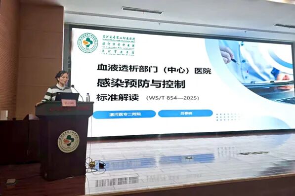規(guī)范與賦能并重,夯實安全基石。 在質(zhì)量安全層面,漯河醫(yī)專二附院血液凈化室護士長呂春曉對《血液透析部門(中心)醫(yī)院感染預(yù)防與控制標準》進行了權(quán)威解讀,從建筑布局、人員管理、操作流程、監(jiān)測要求等多個方面,深入講解了標準的核心要點,為各醫(yī)療機構(gòu)落實規(guī)范化管理、確?;颊甙踩峁┝艘罁?jù)。由漯河市婦幼保健院血液凈化室護士長劉曉靜與臨潁縣人民醫(yī)院血液凈化室護士長陳曉夢主持會議。