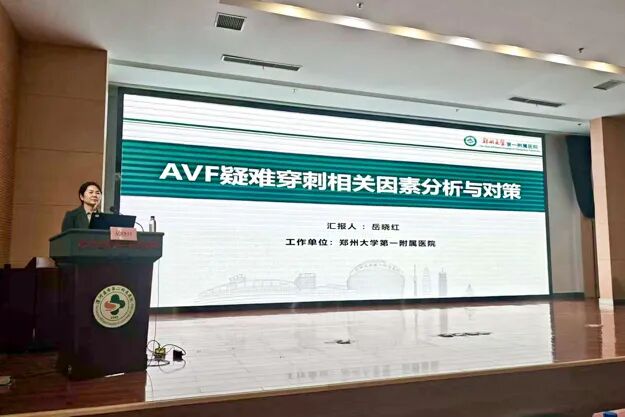 中華護理學(xué)會血液凈化專業(yè)委員會委員、鄭州大學(xué)第一附屬醫(yī)院血液凈化中心護士長岳曉紅以《AVF疑難穿刺相關(guān)因素分析與對策》為題,從精準評估、穿刺、超聲輔助、團隊協(xié)作幾個方面,分析了動靜脈內(nèi)瘺穿刺困難的各類因素,分享了一系列實用、有效的解決方案。由漯河市第二人民醫(yī)院血液凈化室護士長朱潔與舞陽縣人民醫(yī)院血液凈化室護士長苗保紅主持會議。