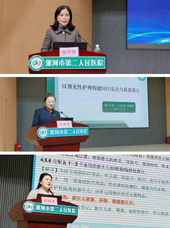 學(xué)術(shù)交流環(huán)節(jié),市中心醫(yī)院NICU護(hù)士長(zhǎng)楊青麗以《新生兒低血糖臨床規(guī)范管理專(zhuān)家共識(shí)》(2021)為題,系統(tǒng)闡述了新生兒低血糖的“預(yù)防、篩查、干預(yù)、隨訪”四個(gè)重點(diǎn);市二院護(hù)理部副主任孫麗霞分享了《以預(yù)見(jiàn)性護(hù)理構(gòu)建NICU安全與質(zhì)量基石》,點(diǎn)明預(yù)見(jiàn)性護(hù)理是NICU生命安全保障的基石,也是質(zhì)量持續(xù)提升的第一道防線;市二院感控辦副主任韓艷軍以《新生兒病區(qū)醫(yī)院感染預(yù)防與控制標(biāo)準(zhǔn)》進(jìn)行了交流,闡明要嚴(yán)守感控標(biāo)準(zhǔn),筑牢安全防線,保障每一位新生兒的健康與安全;市婦幼保健院兒科護(hù)士長(zhǎng)鄭文韜以《高危兒靜脈通路的合理選擇》展開(kāi),講解了高危兒靜脈通路的選擇,核心在于基于個(gè)體評(píng)估,實(shí)現(xiàn)安全與療效的最佳平衡;市二院靜療專(zhuān)科護(hù)士李艷結(jié)合《兒童靜療常見(jiàn)并發(fā)癥的預(yù)防及處理》,提出兒童靜療安全,核心在于以預(yù)防為首;市二院傷口造口專(zhuān)科護(hù)士馬美華分享了《兒童常見(jiàn)皮膚護(hù)理與管理》,闡述嚴(yán)守預(yù)防底線,踐行精細(xì)照護(hù),是守護(hù)新生兒稚嫩肌膚、避免醫(yī)源性皮膚損傷的根本之道。