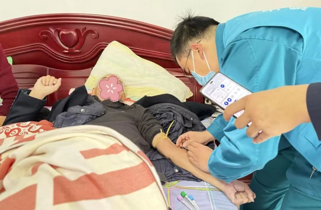 76歲的老人在外地接受膽管癌手術(shù)后返家休養(yǎng),身上仍攜帶兩根術(shù)區(qū)引流管。11月12日早上,家屬突然發(fā)現(xiàn)引流液呈血性,并緊急與主管醫(yī)生溝通后,醫(yī)生建議立即進行血常規(guī)和凝血功能檢測,明確病情變化??稍摶颊邉傋鐾晔中g(shù),身體虛弱,行動不便,往返醫(yī)院的路程對他來說無疑是一種煎熬,焦急的家屬只好匆匆趕往漯河醫(yī)專二附院求助。急診科醫(yī)護人員幫助家屬通過“豫健護理到家”平臺完成下單操作,經(jīng)驗豐富的陳笑寒護士長與護士李鵬舉第一時間攜帶專業(yè)采血設(shè)備和護理包,火速趕往患者家中,緩解了患者與家屬的燃眉之急。(盧 闖 劉 旭 袁錦鈺)