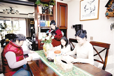 溫媛媛(右一)和家人在“悅心小舍”讀書。