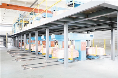 12月13日,記者在臨潁縣銅基新材料產(chǎn)業(yè)園看到,金普森公司的生產(chǎn)線正在有序運轉(zhuǎn),擠壓成塊的再生銅投入廢舊銅熔化爐,隨后變成一盤盤色澤金黃的高純度銅。“公司主要生產(chǎn)銅線材、合金復(fù)合銅線等。這些產(chǎn)品在各類電氣、化學(xué)工業(yè)、射頻電纜等領(lǐng)域得到廣泛應(yīng)用。”臨潁物流園區(qū)管委會副主任王永強告訴記者。