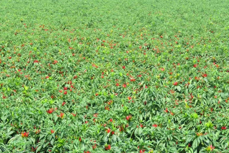 你看看:榮莉萊的辣椒直播大田表現(xiàn)非常的好,縱橫成行,合理密植,通風透光,光合作用強,增產(chǎn)效果明顯,利國利民,一般畝增產(chǎn)都在300斤以上,每畝純收入5000多元,值得在省內(nèi)外推廣。榮莉萊的這種小麥套種辣椒的種植模式適用于在河南、安徽、山東、河北、天津、陜西、山西、新疆等中北部地區(qū)大面積機械化推廣種植。目前,已經(jīng)在省內(nèi)外推廣這種種植模式在10萬畝以上。同時,這種麥椒套種畝產(chǎn)小麥在1000斤以上,既保證了糧食安全,又增加了經(jīng)濟收入,是今后大面積推廣種植的方向。